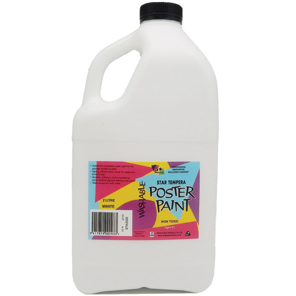 5 STAR TEMPERA POSTER PAINT WASHABLE BOTTLE 2L WHITE