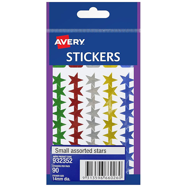 AVERY 932352 STAR STICKERS 14MM ASSORTED PACK 90