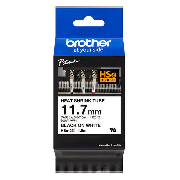 BROTHER HSE-231 HEAT SHRINK TAPE 11.7MM X 1.5M BLACK ON WHITE