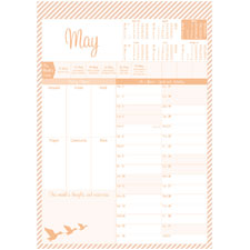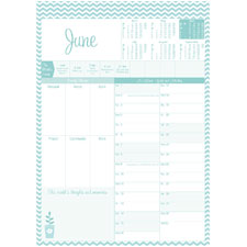 Special layout for priorities, goals and activities, monthly events, thoughts and memories