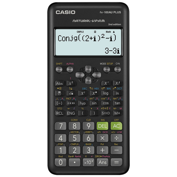 The Casio FX-100AU PLUS Scientific Calculator is easy to operate and can quickly perform over 300 functions including 40 different unit conversions, Complex number, Base-N, Normal Distribution, and Vector calculations