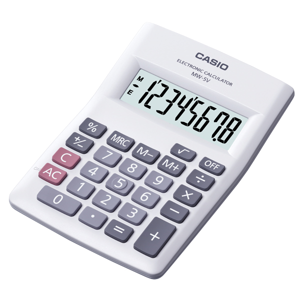 CASIO HANDHELD CALCULATOR MW5V 8 DIGIT WHITE
