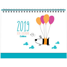 COLLINS DESK CALENDAR MONTH TO VIEW DOG AND BIRD FLIP OVER W210 X L150MM 4 COLOUR