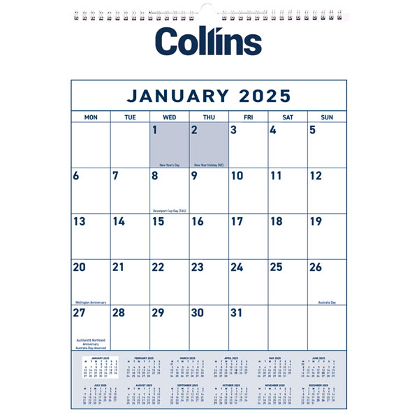 COLLINS WALL CALENDAR ONE MONTH TO VIEW W295 X L422MM ODD YEAR