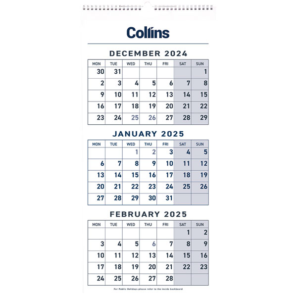 Collins three month to view calendar.