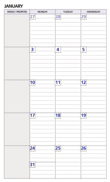 Monthly Dated refill pages for the Debden Dayplanner Personal Edition.