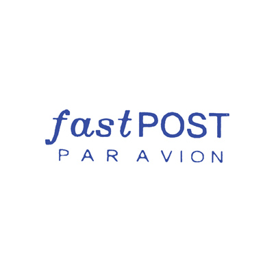 Stamps 'Fast Post Par Avion' in blue ink