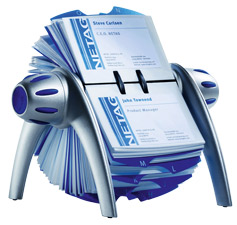 DURABLE BUSINESS CARD HOLDER ROTARY FILE A-Z INDEX 500 DOUBLE SIDED CARDS SILVER AND BLUE
