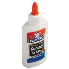 Elmers School Glue is a washable, no-run glue that is easy to use and stays where you put it