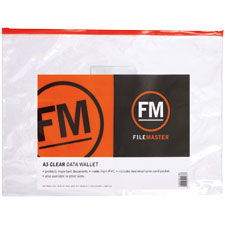 FM DOCUMENT WALLET DATA WALLET PVC A3 ZIPPED CLEAR