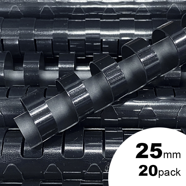 GBC PLASTIC BINDING COMB ROUND 21 LOOP 25MM A4 BLACK PACK 20