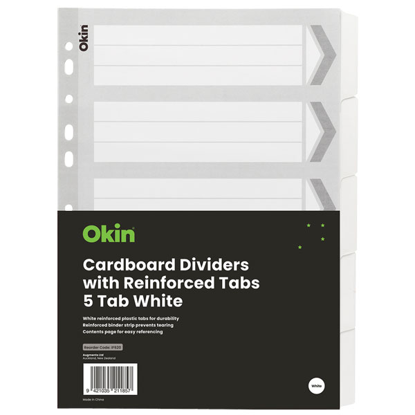 ICON CARDBOARD DIVIDER REINFORCED 5 TAB A4 WHITE