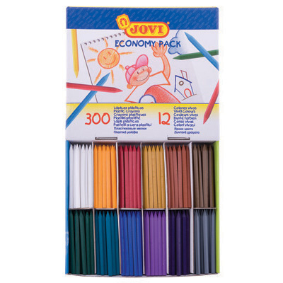 JOVI PLASTIC CRAYONS 12 ASSORTED PASTEL COLOURS WITH WHITE BOX 300