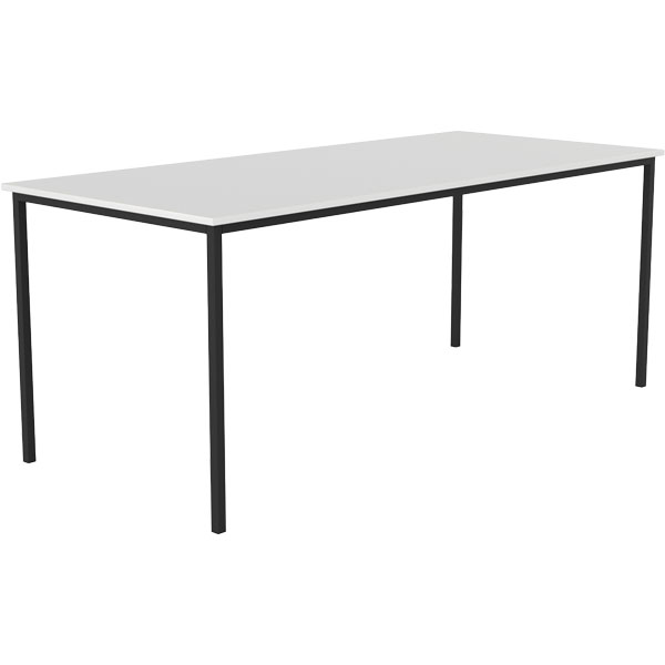 KNIGHT CUBIT CANTEEN TABLE 1800 X 800MM WHITE TOP BLACK LEGS