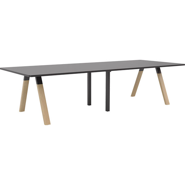 KNIGHT LIGNA BOARDROOM TABLE W3000 X D1200MM BLACK TOP METAL MIDDLE AND OAK OUTER LEGS