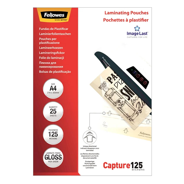 LAMINATING POUCH FELLOWES A4 125MIC PKT/25