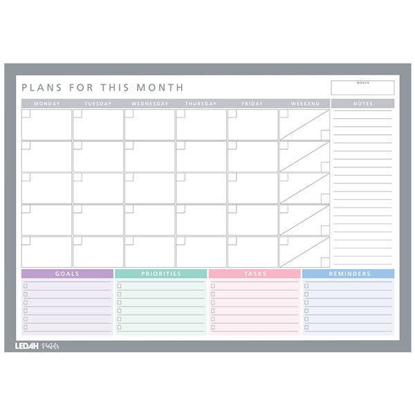 LEDAH PASTELS MONTHLY DESK PLANNER A3 20 SHEETS