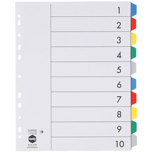 MARBIG MANILLA INDEX DIVIDER EXTRA WIDE 1-10 TAB A4 ASSORTED
