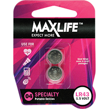 MAXLIFE BATTERY ALKALINE BUTTON CELL LR43 PACK 2