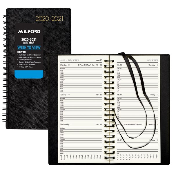 MILFORD MID YEAR APPOINTMENT DIARY BOSTON SLIM 170 X 80 WEEK TO VIEW 2020/2021