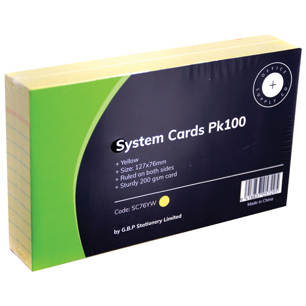 OFFICE SUPPLY CO SYSTEM CARDS 76 X 127MM YELLOW PACK 100