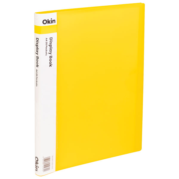 OKIN DISPLAY BOOK A4 WITH INSERT SPINE 20 POCKET YELLOW
