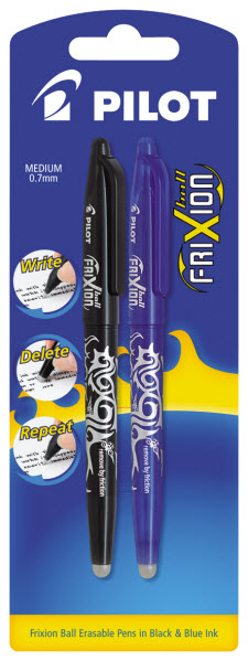 PILOT FRIXION ERASABLE 0.7MM BLUE AND BLACK PACK 2