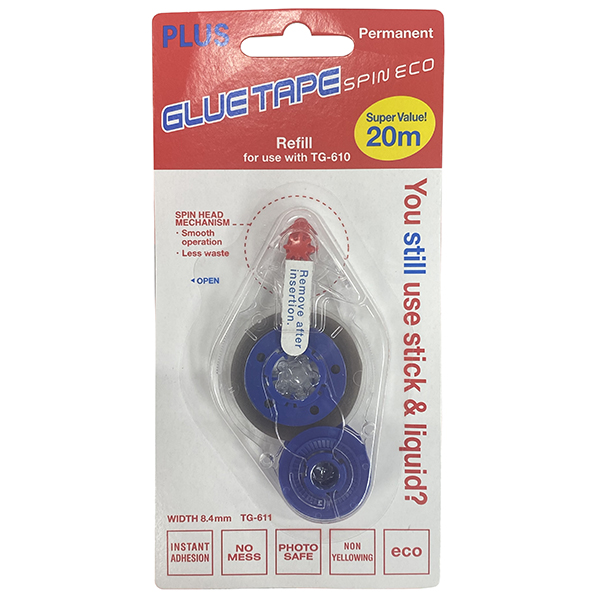 PLUS TG-610 GLUE ROLLER PERMANENT BLISTER W8.4MM X L20M