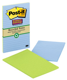 POST-IT 5845-SST NOTES SUPER STICKY RECYCLED BORA BORA 90 SHEET W127 X L203MM PACK 2