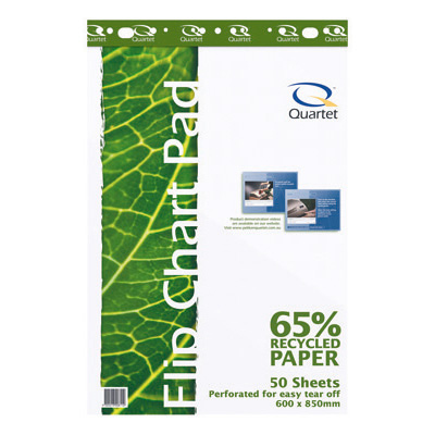 QUARTET RECYCLED FLIPCHART PAD 65GSM 50 SHEETS 600 X 850MM WHITE PACK 2