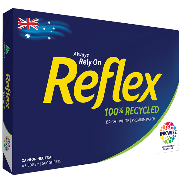REFLEX COPY PAPER 100% RECYCLED INKWISE TECHNOLOGY A3 80GSM PACK 500 SHEETS