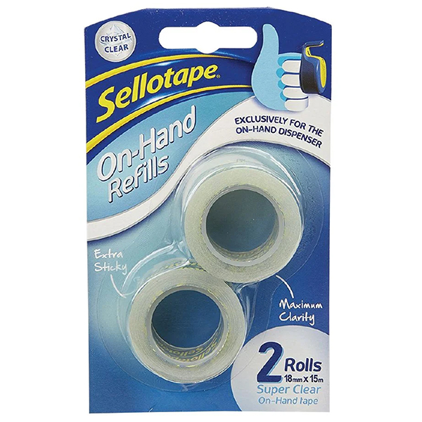 Sellotape On-Hand Dispenser Refills W18mm x L15m 2 Pack.
