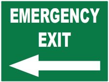 SIGN "EMERGENCY EXIT" LEFT ARROW 240 X 300MM