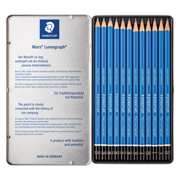 STAEDTLER 100 MARS LUMOGRAPH SKETCHING PENCIL ASSORTED DEGREES BOX 12