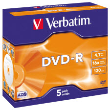 VERBATIM 95070 DVD-R 4.7GB 16X JEWEL CASE SILVER PACK 5