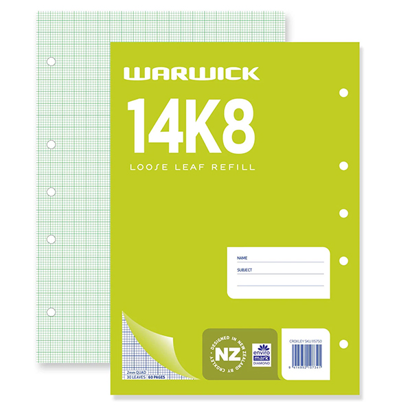 WARWICK 14K8 REFILL PAD QUAD A4 2MM 30 LEAF